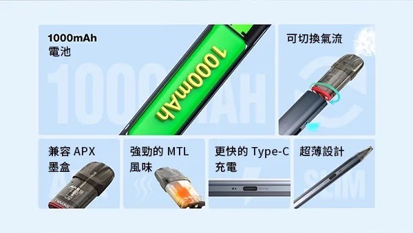 改進了 APX Mesh 濾芯,使用壽命更長、味道更明顯、口感更滑順。